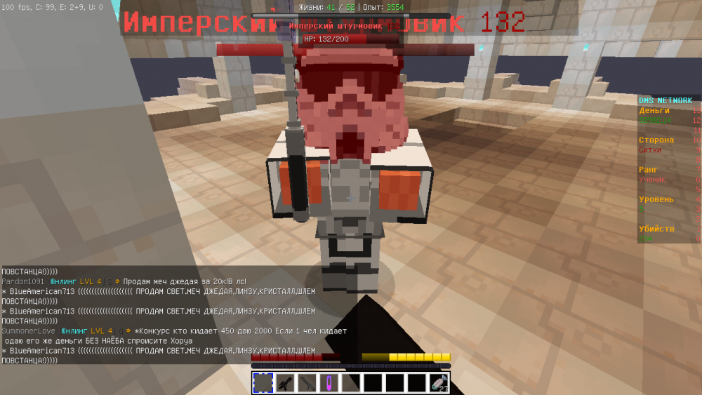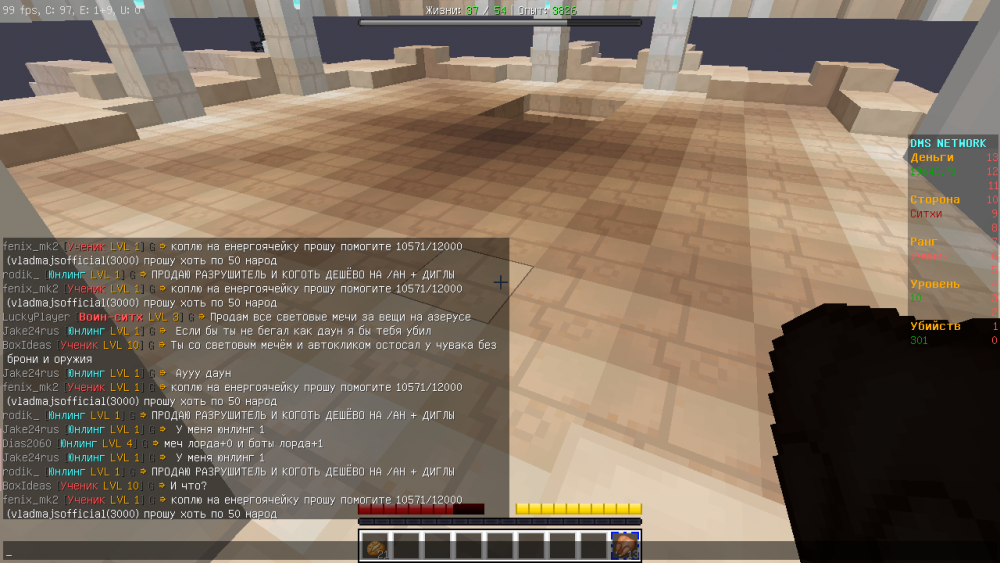 ZonG1304 использовал баганный легендарный меч джедая (не бил ею, а использовал в своих целях) Он хотел продать мне легендарный меч ситхов за 130000$, я не доверял ему и он написал как-то так: "на возьми пока что легу джедов она моя". Я взял меч из сундука и увидел, что она баганная (слеповая 2). Он не хотел кидать легендарный меч первый и я написал: "Кидай легу ситхов, я кидаю тебе баг легу джедаев и 130К" и он отказался, при этом требовал легендарный меч джедаев (баг) обратно. Я ему отказал и он начал агриться. Я написал: "Кидай легу ситхов, я кидаю тебе баг легу джедаев и 130К или жалоба за использование баг леги", он отказался и начал флудить, что я его кинул -_-. P.S. Даже если бы он согласился на мои условия, я всё равно бы подал жалобу. P.S2. Рассмотрите вторую жалобу