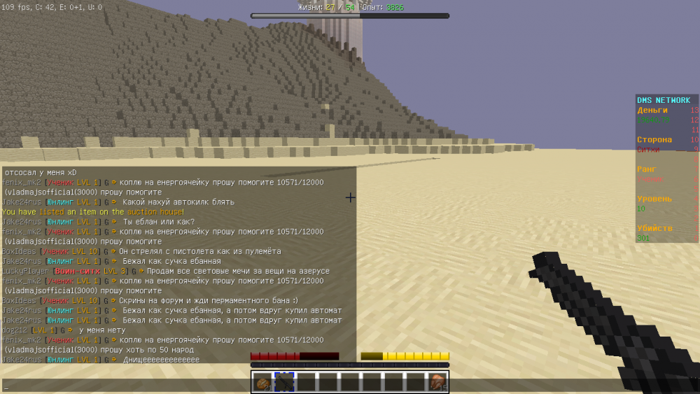 УЖАС! ШОК!!! Играю значит, прибежал к штурмовику, бью его. Бью-бью, И ВЖУХ, АЛЛАХ АКБАР И МЕЧА НЕТ! Пробовал жать на Q, принт клавише стёрся у меня уже. Пробовал перезаходить, писать /ah -не помогает.. Скрины: P.S. Я ещё хотел скинуть скрины баганных вещей у людей, но... из-за проблемы с лаунчером я забыл переместить скриншоты и удалил папку -_-. Знаю ники: Limon1337(или как-то так), Dale, и ещё куча. У меня было более 20 скриншотов-точно. И ещё я бы хотел спросить: это правда, что скоро будет запрещён обман при торговли на серверах?