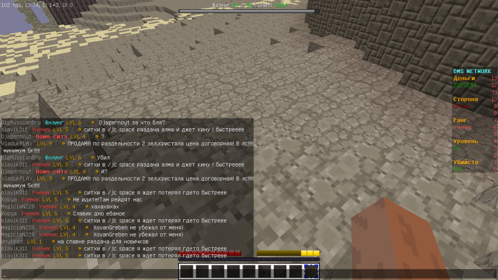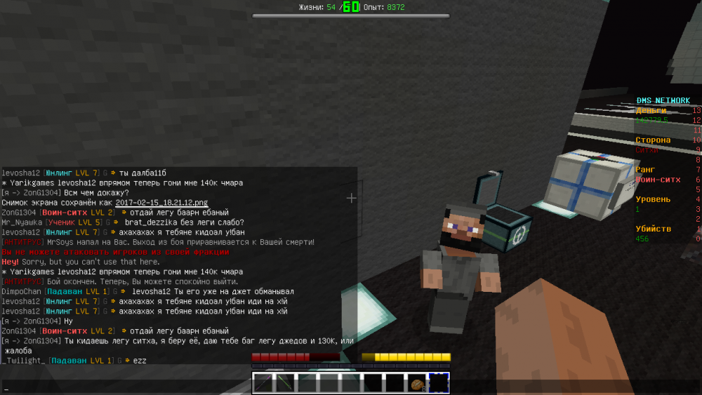 Ребёнок на скриншоте использует автокликер. Я не успел заскринить, док-ва. Но он стрелял из пистолета, как из пулемёта. +Постоянный мат и оскорбления в глобальном чате