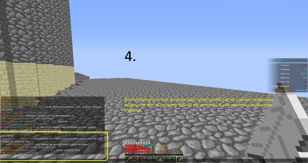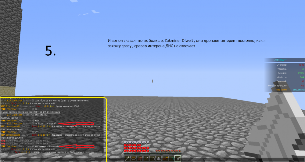 В крации 1.Ники тех кто в это замешен Zakminer Craizy12 Diweit MrEnderboy12 еще там был II ник II <--- НЕ ЗНАЮ 2. Изпользовает постороние ПО что бы дропать интернет других игроков , и так они добывают ресс не честном путем 3. Все на скрин 4. Будет очень Хорошо если забаните по ЙП без возможность вернуть все