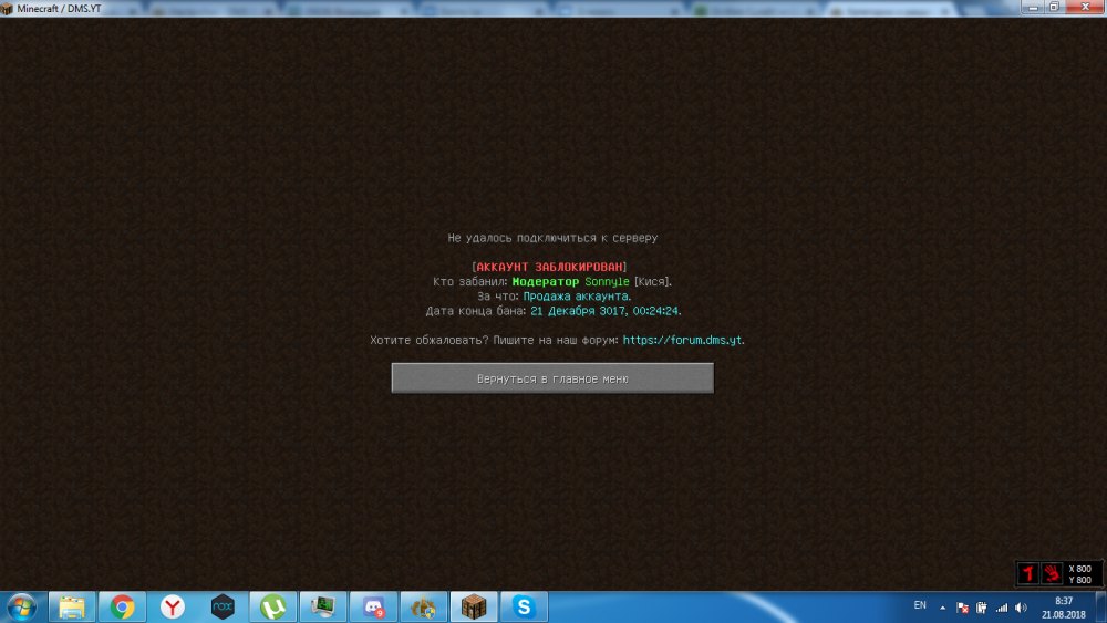 Сегодня утром зайдя на проект мне выдало что я забанен (скриншот ниже), я естественно пошел на форум и увидел чтобы зайти на форумник нужно ввести код который был отправлен на email. Зайдя на email я был очень сильно удивлен т.к какая-то особа очень сильно хотела забрать у меня аккаунт и сделала 9 попыток авторизации (10 моя чтобы восстановить возможность захода на форум) Мне хотелось бы конечно получить разбан моего игрового аккаунта (Но я такого мнения что вы ответите "Недостаточно доказательств что аккаунт был взломан и т.д") и по этой причине я хочу узнать как получить разбан. И при этом взломщик пытался забрать аккаунт именно себе в течении какого-то промежутка времени потому что забанен аккаунт был не сразу